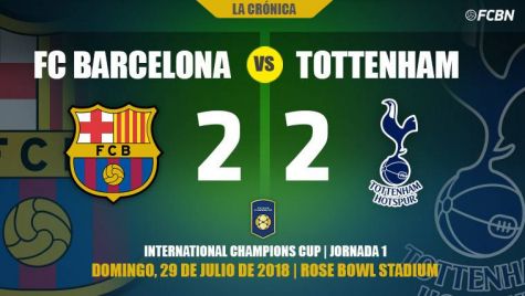 Árbitro: Kevin Stott.Incidencias: Partido correspondiente a la primera jornada de International Champions Cup para el FC Barcelona, disputado contra el Tottenham en el Rose Bowl Stadium de Los Angeles (Estados Unidos).