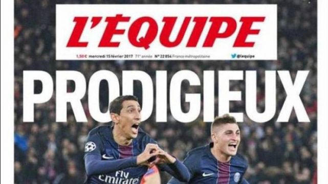 "Súper PSG, Barça destruido. Doblete de Di María y Messi nulo. Dulce noche del Día de San Valentín. Hecho para enamorarse. Pero para un equipo que parecía destinado a recibir otra bofetada. En su lugar, se puso el traje de noche más seductor, lo que le hace hermosa y ciega a como Messi, Neymar y Suárez, dejándoles sin palabras por su belleza. Una demostración de la nobleza de fútbol del PSG para una noche histórica".