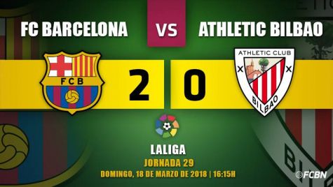 Al FC Barcelona le bastó con media hora para superar a un Athletic Club que no pudo parar el vendaval azulgrana en el primer tiempo. Paco Alcácer y Leo Messi dejaron el partido visto para sentencia en apenas media hora
