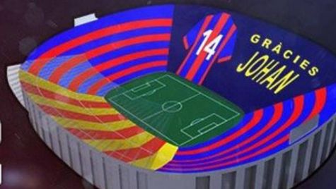 En el mosaico podrá leerse el lema "Gràcies, Johan!", mientras que al lado aparecerá una imagen de una camiseta del FC Barcelona con el dorsal "14". El resto del público que ocupe sus asientos en las gradas formará una senyera catalana y los colores azul y grana, representando de esta forma el sentimiento barcelonista y catalanista de Johan Cruyff.