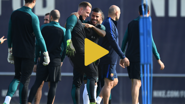 Estuvieron presentes todos los jugadores disponibles del primer equipo, aunque se desconoce si Gerard Piqué y Jordi Alba pudieron participar en la sesión. No se prevé que estén listos para ser alineados ante el conjunto hispalense, por lo que Luis Enrique deberá colocar la misma defensa que ha jugado en los últimos encuentros de Liga y Champions League.