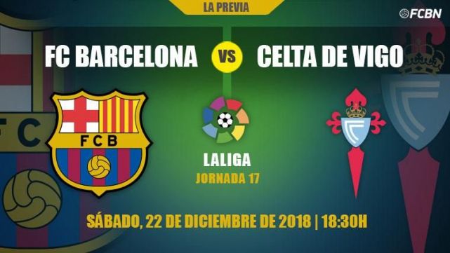 El FC Barcelona disputará el último partido de este 2018 en el Camp Nou contra el Celta de Vigo, en un duelo correspondiente a la decimoséptima jornada de LaLiga Santander que tendrá lugar este sábado 22 de diciembre a las 18:30 de la tarde (hora peninsular). El conjunto de Ernesto Valverde intentará ofrecer ante su público el regalo de Navidad en forma de victoria.