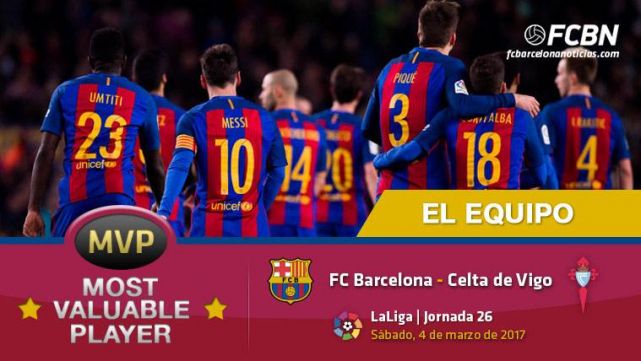 La actuación coral del FC Barcelona fue sublime para vapulear al Celta, motivo por el cuál desde "FCBN" hemos hecho una excepción con este "MVP" para dedicárselo a todo el equipo, justo cuando más unión necesita de cara a la remontada en Champions League.