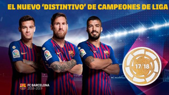 El FC Barcelona tiene varias novedades en su equipación para la temporada 2018-19, pero además LaLiga ha añadido un detalle a su camiseta. El club ha anunciado este jueves que a partir de ahora lucirá un nuevo distintivo en su indumentaria, en el que será destacado como campeón de la pasada campaña.