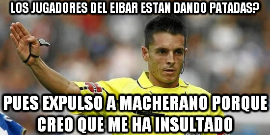 El colegiado del encuentro Del Cerro Grande ha protagonizado el mejor "meme" el partido después de una actuación lamentable en la que acabó expulsando al argentino Javier Mascherano. Las redes se acordaron de él y de su decisión entre las patadas del Eibar