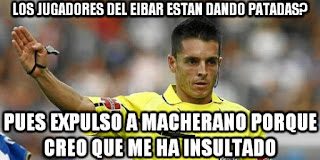 Y las redes sociales no se han callado ante la actuación de Del Cerro y se han acordado de él en el que para nosotros ha sido el mejor "meme" del encuentro. Sobre todo porque refleja lo sucedido en los últimos minutos cuando en lugar de amonestar a algún jugador vasco de los que estaban moliendo a patadas a Neymar, acabó expulsando a Mascherano por supuestamente haber insultado a su árbitro asistente.