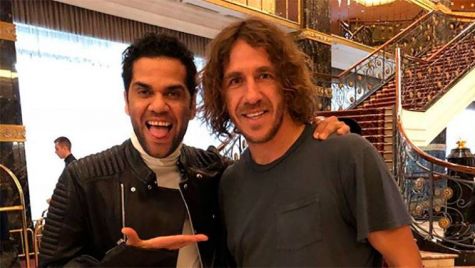 Actualmente, Dani Alves se encuentra pasando unos días en Barcelona junto a su mujer, la modelo Joana Sanz. El lateral brasileño pudo reencontrarse en el hotel donde se hospeda con Carles Puyol, míticoex capitán azulgrana ex compañero del brasileño en el Barça durante sus ocho temporadas en el Camp Nou.