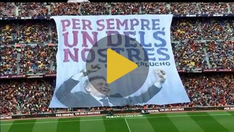 En claro homenaje a esos tres años gloriosos para el barcelonismo con "Lucho" al mando, el tifo tenía al entrenador en el centro con un lema contundente, "Per sempre un dels nostres. #foreverlucho" (Para siempre uno de los nuestros. Para siempre Lucho), podía leerse.