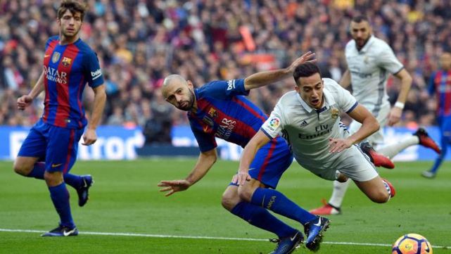 En la primera mitad, se critica un supuesto penalti de Javier Mascherano por una entrada a Lucas Vázquez. Repasando la repetición, puede verse cómo el argentino ejerce una carga sobre el atacante del Real Madrid, que llega en carrera y aprovecha el contacto para dejarse caer por inercia.