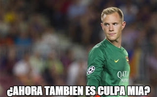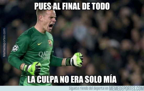 A la gente de las redes sociales les gusta mucho lo que pasa alrededor de Marc-André ter Stegen. Y es que el portero alemán del FC Barcelona ha vuelto a encabezar los mejores memes realizados durante el partido correspondiente a la séptima jornada de la Liga BBVA 2015-2016. Y eso que guardavallas no ha sido ni titular?