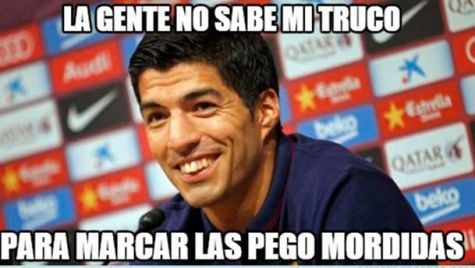 El FC Barcelona de Luis Enrique venció este sábado ante la UD Las Palmas y sumó tres importantes puntos de cara a la consecución del título de Liga BBVA 2015-2016. A pesar de que no fue el mejor encuentros de los blaugranas, Luis Suárez volvió a mojar, sumando ya 25 tantos. Algo que, para los usuarios de internet, tiene un secreto: pegarle "mordida" a la pelota.