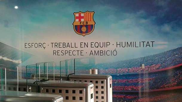 El club azulgrana quiso marcar los conecptos que rigen a la entidad y a su plantilla en la pared que se encuentra justo antes de entrar a los vestuarios del equipo en Sant Joan Despí. "Esfuerzo, trabajo en equipo o humildad" son algunos de los valores referenciados