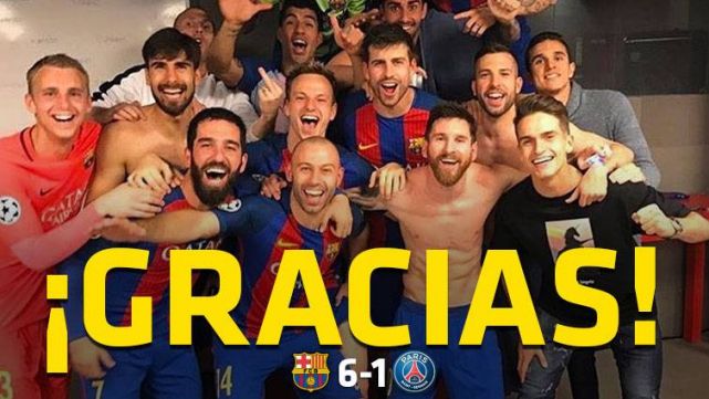 Hoy es un día para que el barcelonismo agradezca el sacrificio de unos jugadores que se convirtieron en héroes para eliminar al PSG en Champions League, celebrando luego a lo grande la gesta histórica sobre el campo y en el vestuario