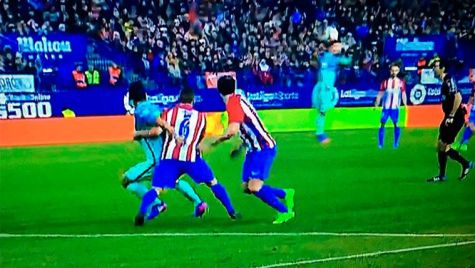 Fue de Koke Resurrección sobre Luis Suárez dentro del área, lo que habría anulado todo lo posterior. Precisamente con esa clara falta, el canterano rojiblanco impedía al uruguayo llegar a defender el hueco creado que aprovechó Godín para centrar.