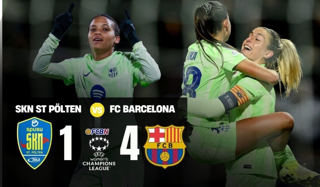 El FC Barcelona ha vuelto a golear al St. Pölten (1-4) en la jornada 4 de la Champions femenina y se consolida en la segunda posición del grupo D, sólo por detrás de un Manchester City que ha ganado sus cuatro partidos.