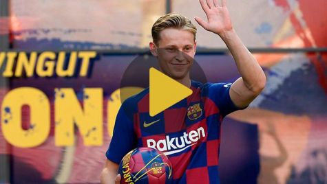 Frenkie de Jong pisó por primera vez con la camiseta del Barcelona el césped del Camp Nou. El holandés se presentó oficialmente ante los 20.000 aficionados azulgranas que se dieron cita en el templo culé para ver de cerca al centrocampista en su presentación