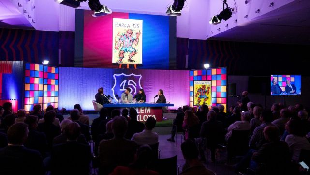 El Fútbol Club Barcelona ha presentado el cartel del 125 aniversario del club, obra del artista mallorquín Miquel Barceló. El acto ha tenido lugar en el Auditori 1899 y ha contado con la participación del presidente Joan Laporta y del comisionado del 125 aniversario, David Carabén.
