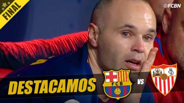 Uno de los hombres del partido fue Andrés Iniesta, que volvió a maravillar con su juego y que incluso marcó un gol, el cuarto de su equipo. En el tramo final de partido fue sustituido para dar entrada a Paulinho y recibió una gran ovación por parte del público del Wanda Metropolitano, incluyendo a la afición del Sevilla. El manchego se emocionó y lloró en el banquillo, consciente de que puede tratarse de su última final con el FC Barcelona.