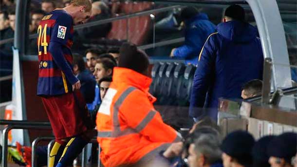 Cabe recordar que tras abandonar el terreno de juego a falta de diez minutos para el final y con marcador favorable al Barça por seis a uno, el entrenador Luis Enrique decidió no introducir ningún cambio a pesar de que contaba con dos más. Por otra parte ésta es la primera lesión que sufre el zaguero francés esta temporada, que siempre ha estado disponible para el asturiano a excepción del primer encuentro de Liga BBVA ante el Athletic de Bilbao, cuando arrastraba una sanción de la campaña anterior.