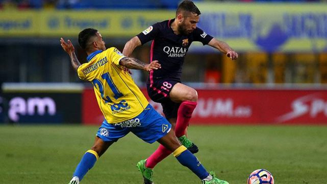 El lateral zurdo del FC Barcelona Jordi Alba volvió a la titularidad después de haber sido suplente ante el Villarreal. Al canterano se le vio muy bien frente a la UD Las Palmas, apareciendo en defensa y ataque y culimnando su actuación con una excelente asistencia