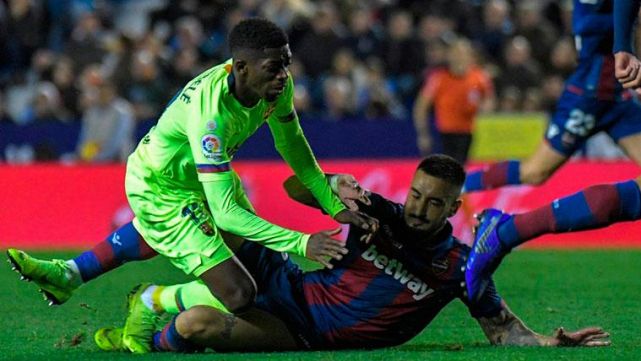 Hay jugadores que parece que piensan que haciendo daño a los que son mejores que ellos pueden hacer que brille su propia mediocridad. Ese es el caso de Erick Cabaco, que no supo aceptar que el FC Barcelona estaba pasando por encima del Levante en el marcador y decidió paliar su rabia haciendo una dura entrada sobre Ousmane Dembélé.