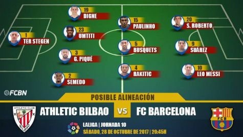 Posibles alineaciones del Athletic Club-FC Barcelona