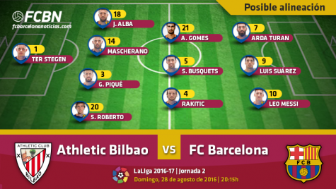 Posibles alineaciones del Athletic Club-FC Barcelona
