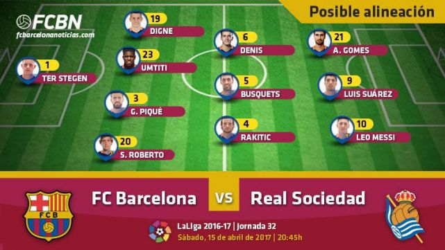 Al FC Barcelona no le queda otra que levantarse en el momento más importante de la temporada, tras los duros golpe frente a la Juventus de Turín y el Málaga CF. Para ello, los azulgranas necesitan vencer y convencer frente a la Real Sociedad, en el duelo de la jornada 32 de LaLiga 2016-2017 que tendrá lugar en el Camp Nou. Un partido y un once, el azulgrana, que estará claramente marcado por los dos próximos partidos claves que tendrán los culés ante la Juve y el Real Madrid, en los que se jugará definitivamente su devenir en Champions League y LaLiga.