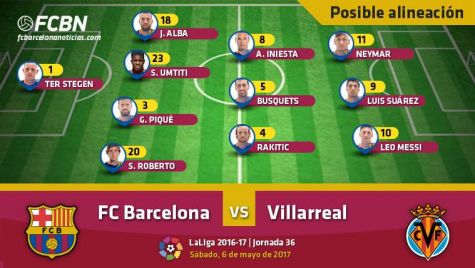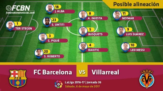 El FC Barcelona tendrá el objetivo de lograr un nuevo triunfo en Liga Santander 2016-17 contra el Villarreal, y para cumplir con su cometido necesitará a sus mejores jugadores. Se espera que el Barça salga con el "once de gala", incluido Iniesta