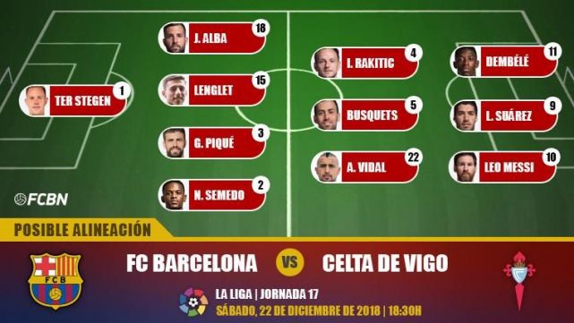El FC Barcelona busca despedir este 2018 de la mejor manera posible en el Camp Nou, que será testigo del duelo de la decimoséptima jornada de LaLiga Santander en el que el conjunto de Ernesto Valverde saldrá con todo a por el Celta de Vigo