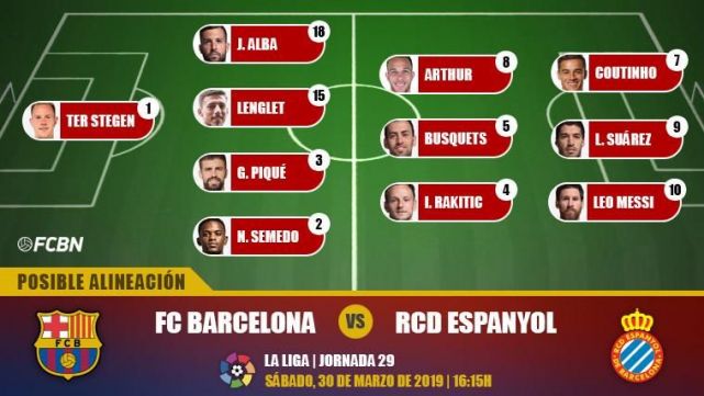 Las posibles alineaciones del FC Barcelona-Espanyol (LaLiga J29)