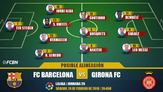 Las posibles alineaciones del FC Barcelona-Girona (LaLiga J25)