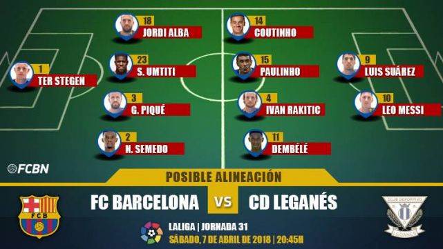 Las posibles alineaciones del FC Barcelona-Leganés (LaLiga J31)