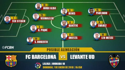 Las posibles alineaciones del FC Barcelona-Levante (LaLiga J18)