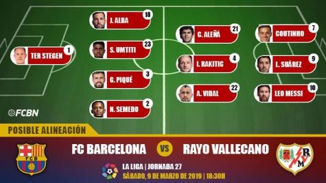 Posibles alineaciones del FC Barcelona-Rayo Vallecano
