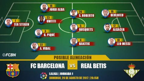 Andrés Iniesta continúa de baja y contra el Betis parece que no se repetirán los experimentos en la alineación, así que el centro del campo debería estar formado por las tres mejores opciones disponibles. Contando que Paulinho no debutará al estar pendiente todavía de cerrar unos trámites burocráticos, Sergio Busquets guardará las espaldas de Ivan Rakitic y Sergi Roberto, que estarán bajo la lupa y deben demostrar que el Barça sigue preparado para ser un equipo dominador y creativo.