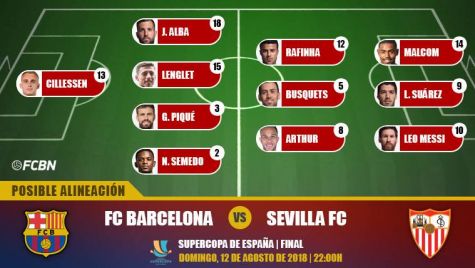 Las posibles alineaciones del FC Barcelona-Sevilla (Supercopa de España)