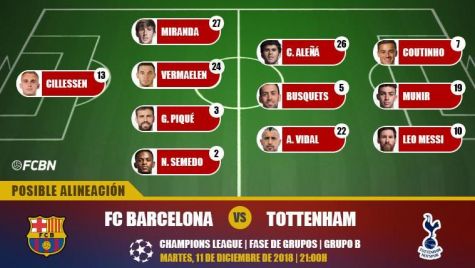 Las posibles alineaciones del FC Barcelona-Tottenham (Champions J6)