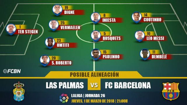 Posibles alineaciones del Las Palmas-FC Barcelona