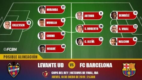 Las posibles alineaciones del Levante-FC Barcelona (Ida de 1/8 de Copa del Rey)