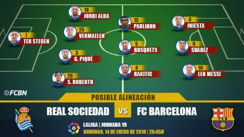 Las posibles alineaciones del Real Sociedad-Barça (LaLiga J19)
