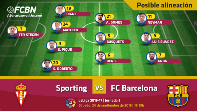 Las posibles alineaciones del Sporting-FC Barcelona (Liga J6)