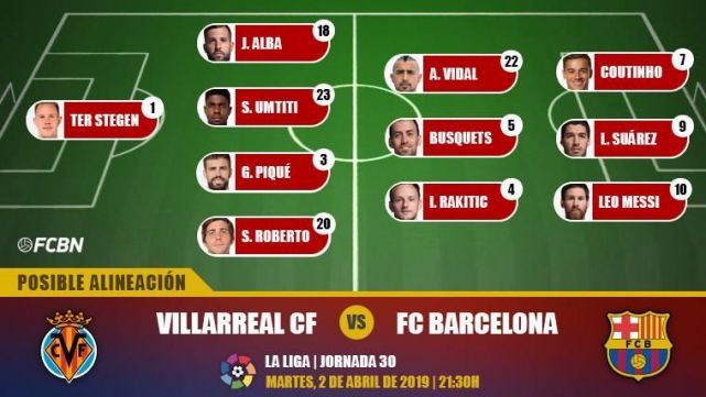 El FC Barcelona visitará al Villarreal en el Estadio de la Cerámica en un encuentro que podría ser muy peligroso si los culés se relajaran. Por eso, Valverde parece que no trastocará demasiado su once y solo introducirá pequeñas novedades como Umtiti o Arturo Vidal