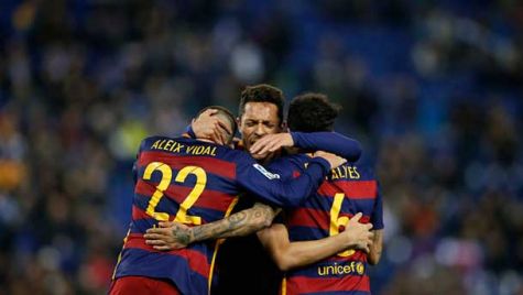 El míster dejó a Daniel Alves y Javier Mascherano en el banquillo, y a Jordi Alba en Barcelona, fuera de la lista de convocados junto con el otro canterano, Sergi Roberto. En lugar de los tres defensores entraron el lateral diestro Aleix Vidal, el zurdo Adriano Correia y el central francés Jeremy Mathieu, que formó el centro de la zaga junto con un incombustible Gerard Piqué.