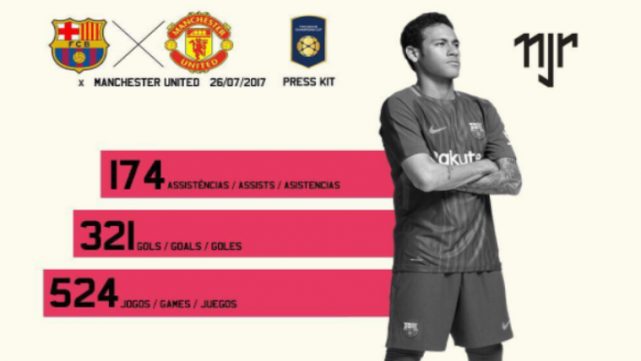 Interesante publicación la que se ha producido este miércoles antes del encuentro entre el Barça y el Manchester United. El padre de Neymar ha colgado en Instagram una imagen de su hijo con sus datos en el club azulgrana y le ha mandado ánimos