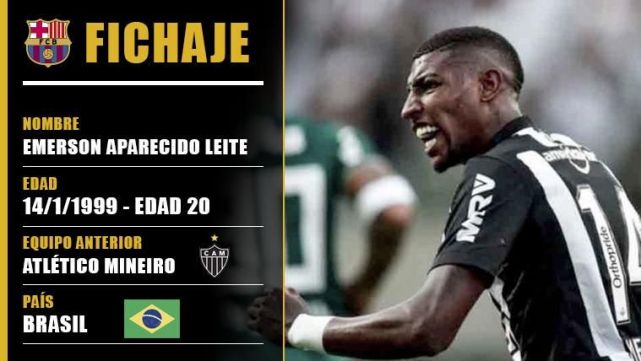 Barcelona y Atlético Mineiro han llegado a un acuerdo por el traspaso del jugador de cara a las próximas cinco temporadas, hasta el curso 2023-24, en una operación por la que el FC Barcelona abonará un precio de 12 millones de euros. El Real Betis finalmente habría descartado participar en el fichaje, pero acogerá a Emerson como cedido hasta final de temporada. Será entonces, a final de curso, cuando se incorpore a la disciplina azulgrana.
