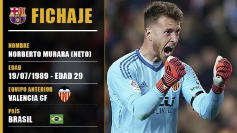 El FC Barcelona ha hecho oficial la llegada de Norberto Murara, popularmente conocido como Neto, como el segundo fichaje de cara a la próxima campaña, tras el de Frenkie de Jong. El brasileño llega procedente del Valencia y relevará a Cillessen