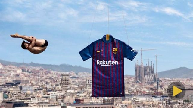 El acto de presentación se ha producido de forma novedosa: mientras un dron sostenía la camiseta desde el aire, un saltador se lanzaba a la piscina. La camiseta de la primera equipación rendirá homenaje a la ciudad de Barcelona con diez franjas azules y otras tantas en granate, en honor a los 10 distritos de la ciudad condal.