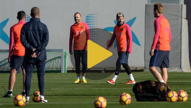 El centrocampista manchego del FC Barcelona, Andrés Iniesta, pudo entrenarse este jueves junto al resto de sus compañeros en la Ciutat Esportiva de Sant Joan Despí, participando activamente en la sesión de recuperación de los de Luis Enrique, después del esfuerzo realizado por los efectivos que dispusieron de minutos para encarrilar las semifinales de Copa del Rey 2016-17 (1-2).
