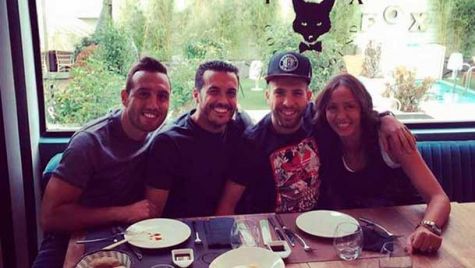 Compañeros de selección y de equipo hasta hace unas semanas, pero sobre todo grandes amigos, Pedro Rodríguez y Jordi Alba se volvieron a reencontrar tras la salida del jugador canario al Chelsea inglés. Fue antes de concentrarse con la selección de Vicente del Bosque cuando ambos jugadores, acompañados del asturiano del Arsenal, Santi Cazorla, y la directora de la selección, Maria José Claramunt, quedaron para comer juntos y pasar una bonita sobremesa hablando de sus vidas actuales.